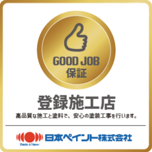 彩美装は、日本ペイント株式会社が定める基準を満たした業者のみが認定される、Good Job保証 施工認定施工店です。