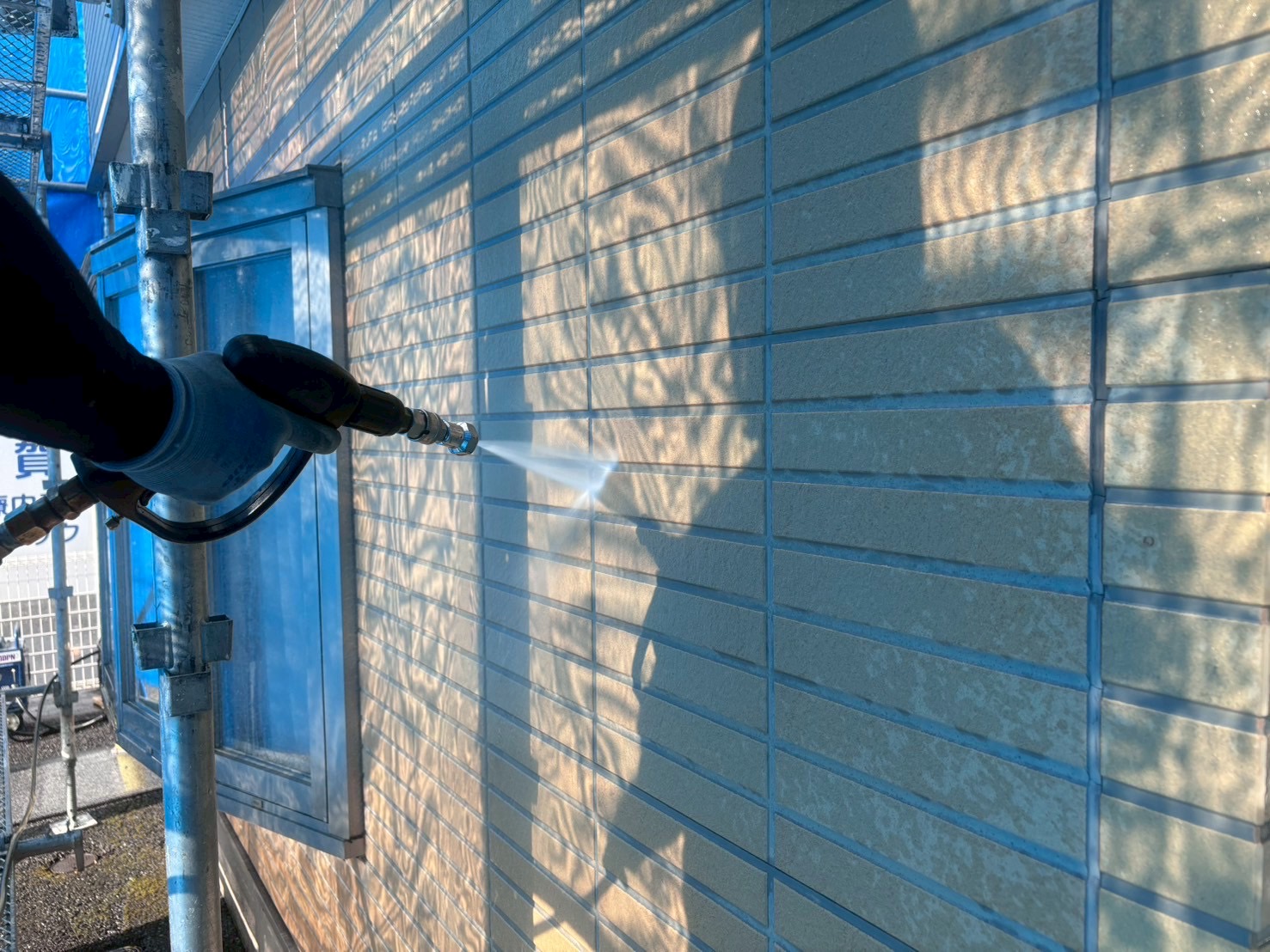 外壁は反ったものをビスを打ち調整してから高圧洗浄。