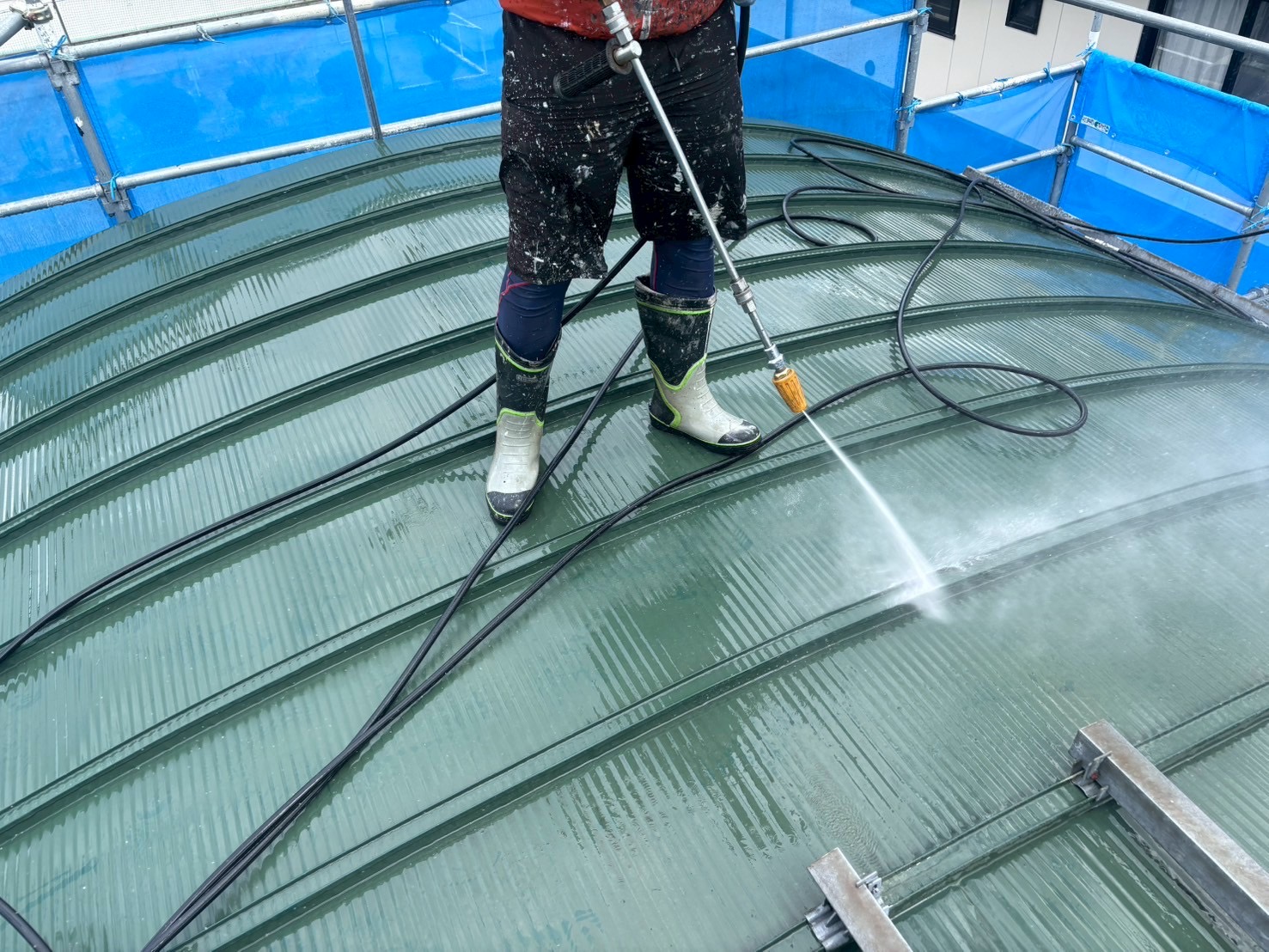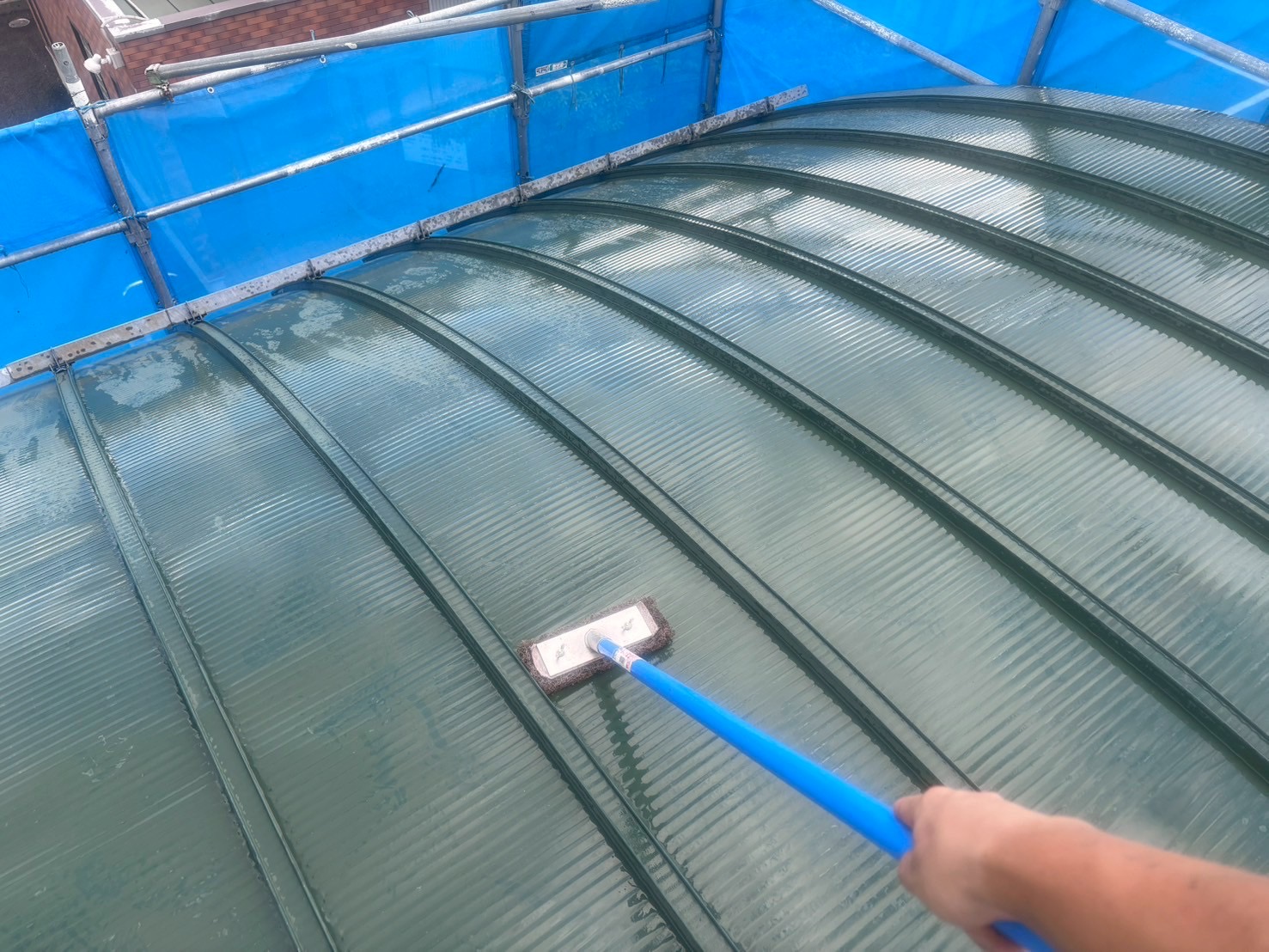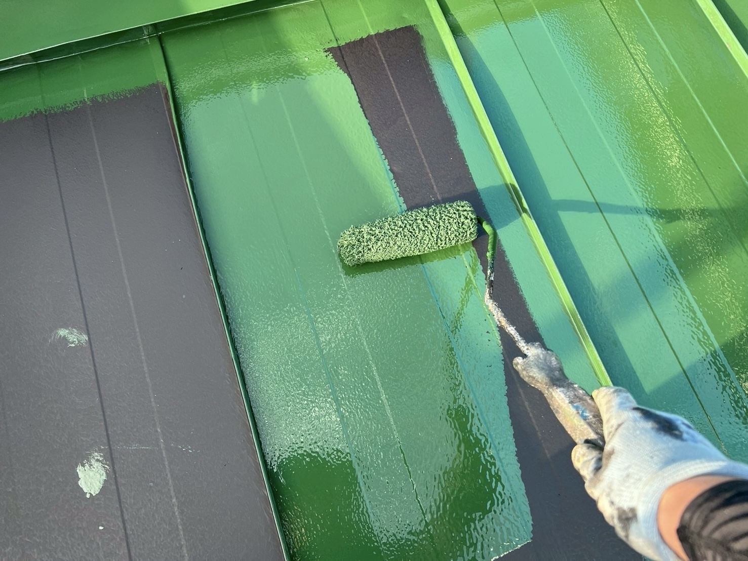 屋根は高圧洗浄▹足付け▹2液エポキシ錆止め▹ダイナミックルーフを2回で仕上げました。