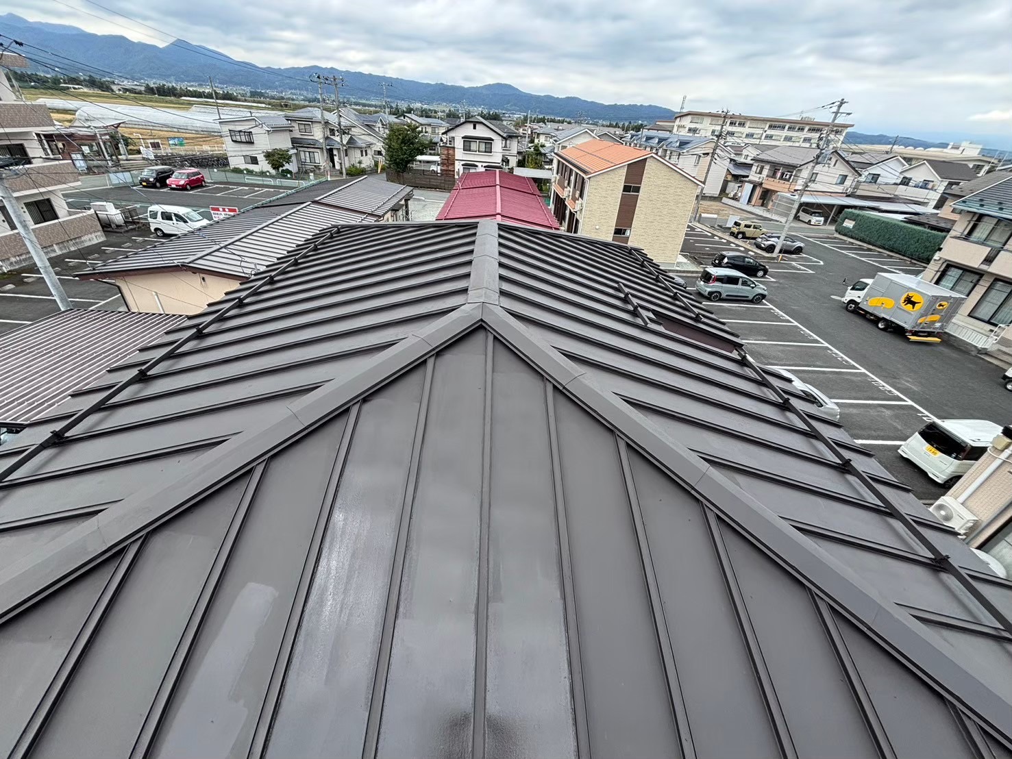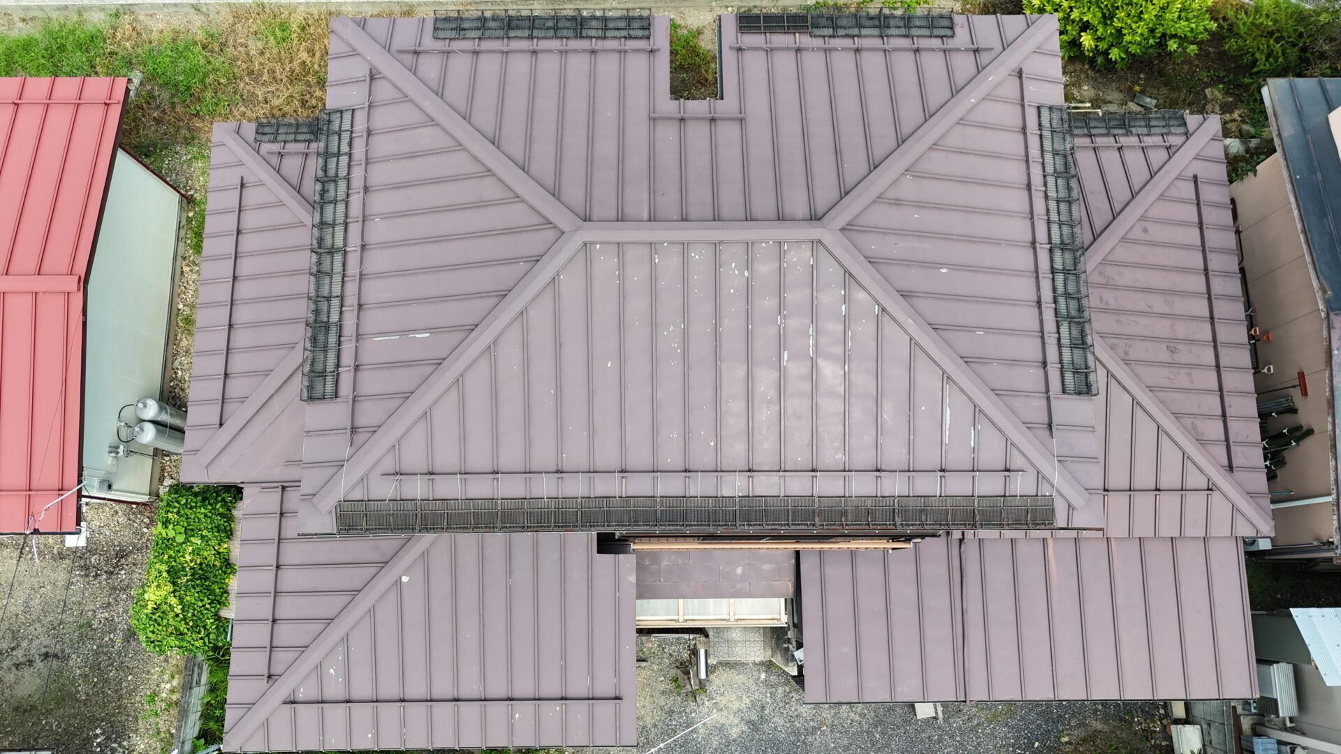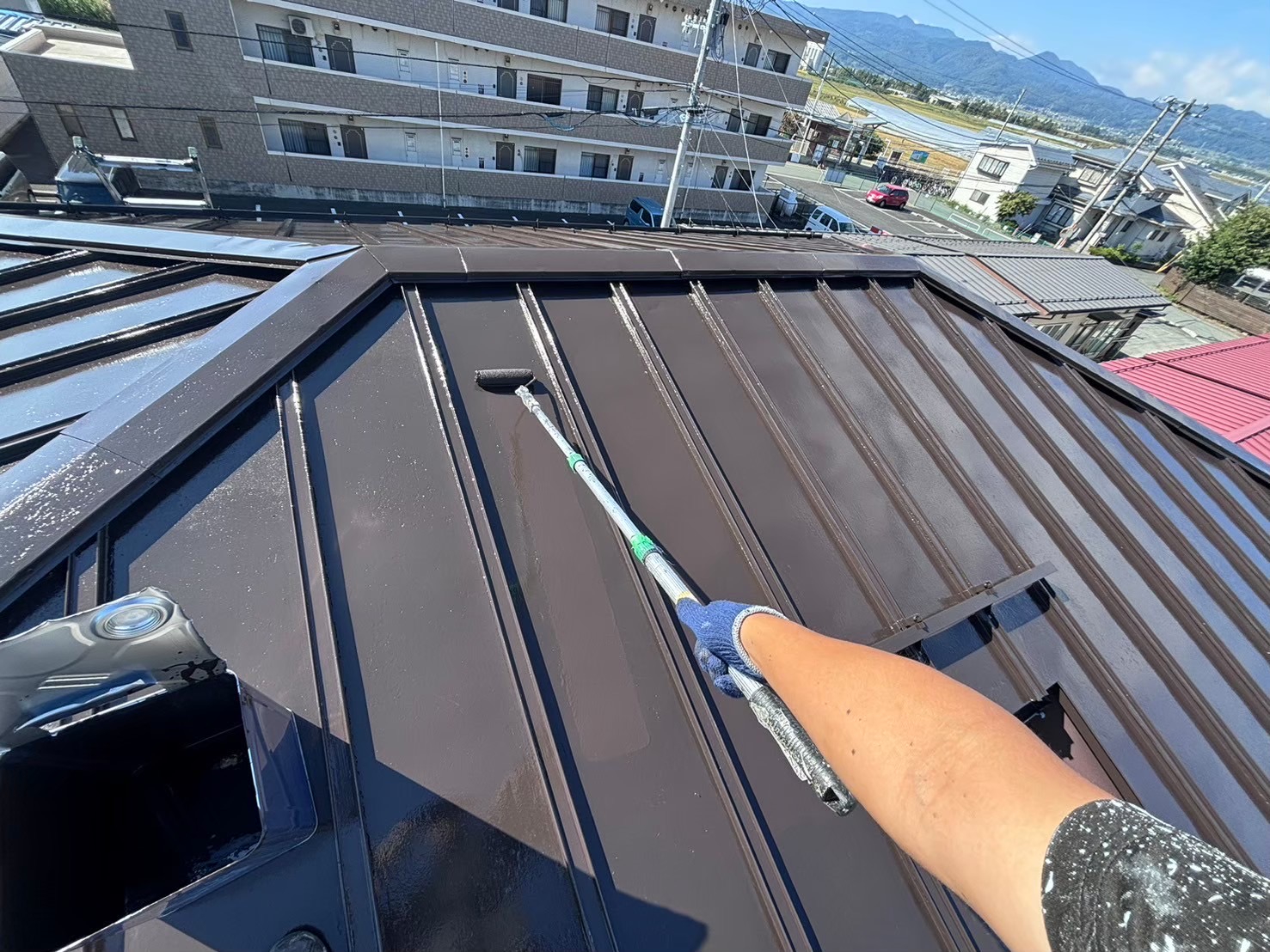 屋根にサビや剥がれが発生しており心配されてましたが、古い弱った塗膜とサビを除去してから3度塗りで施工させていただきましたので、
