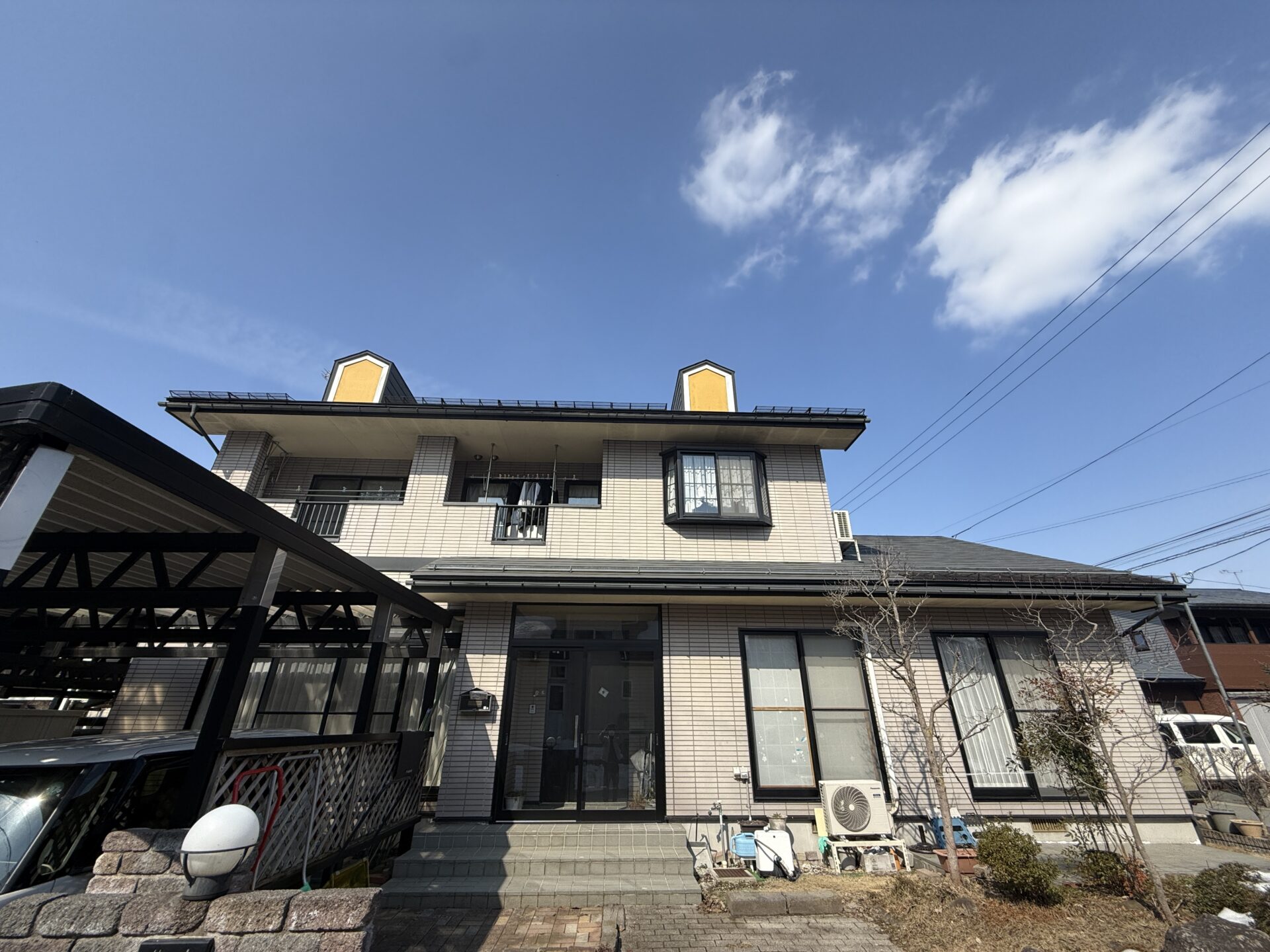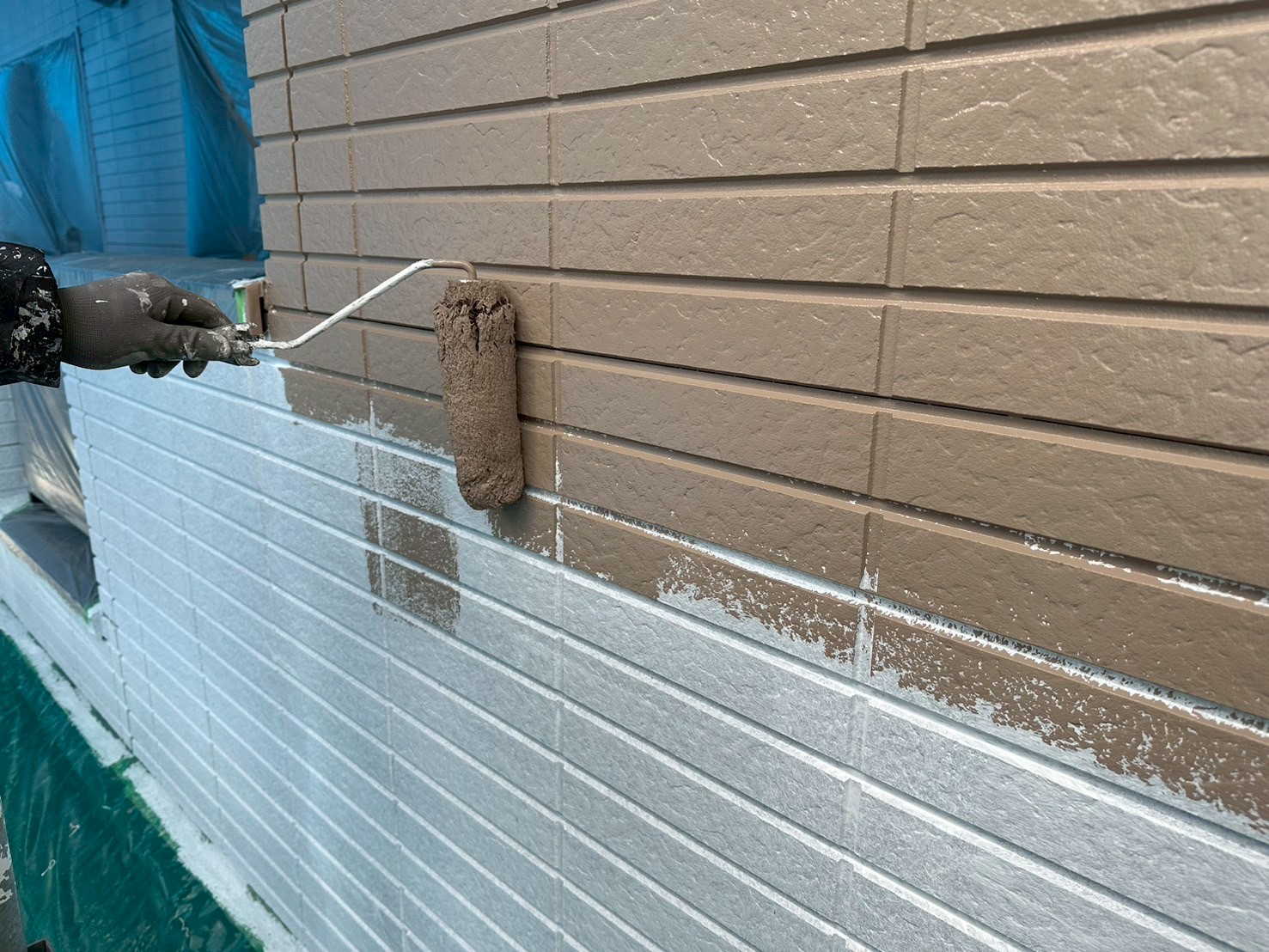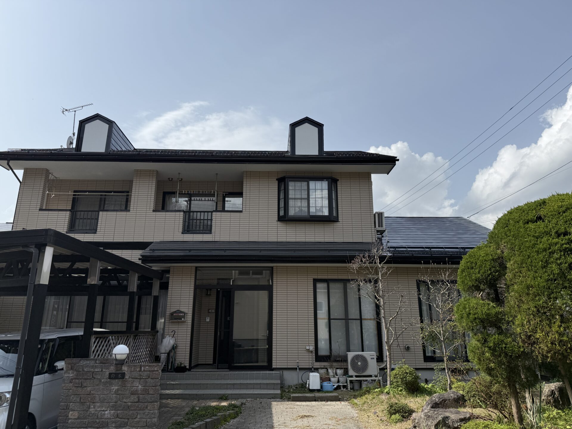 また、タイル調の外壁だったのでせっかくのタイル調を活かしたいと思い、タイル部分と目地の色を分けて塗るダブルトーン塗装をご提案させていただきました。