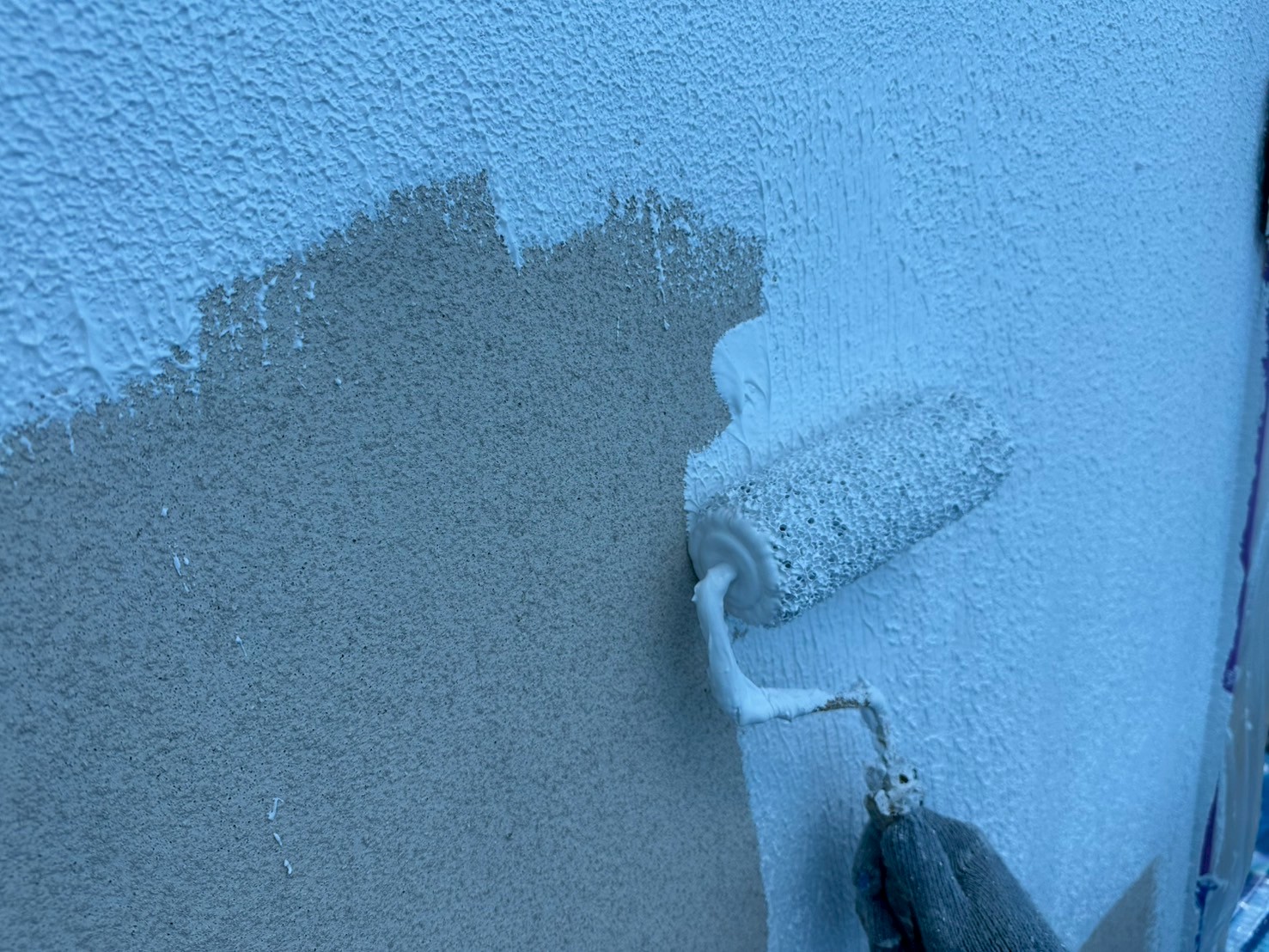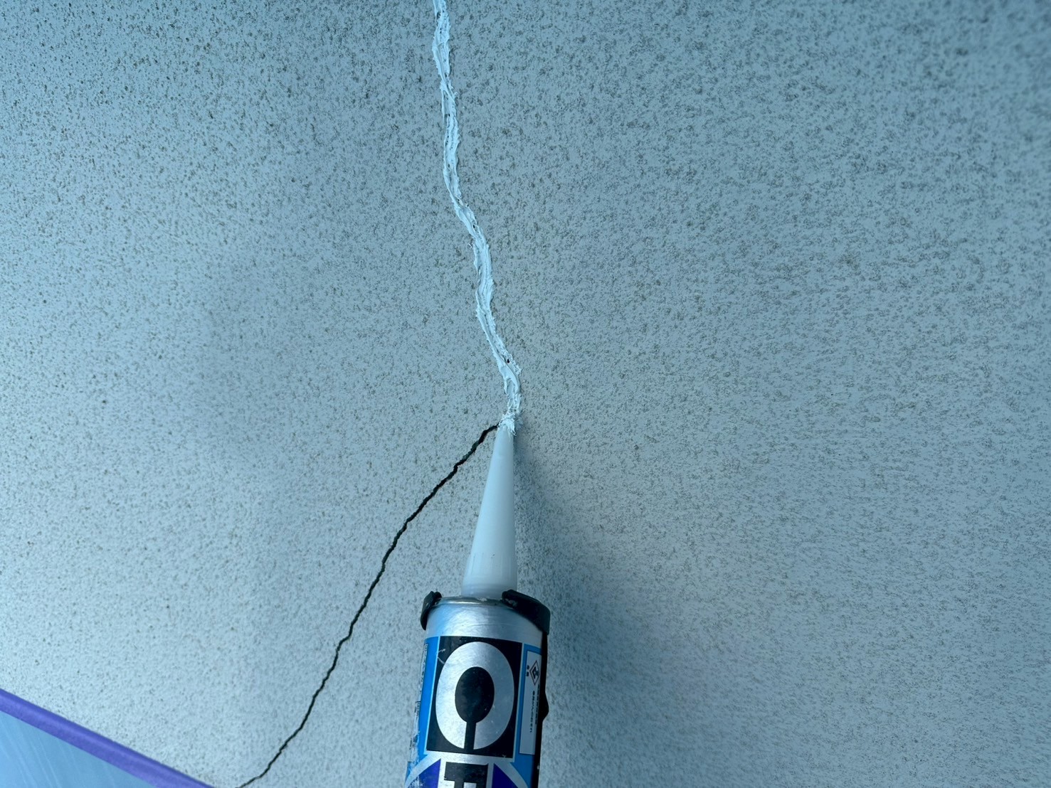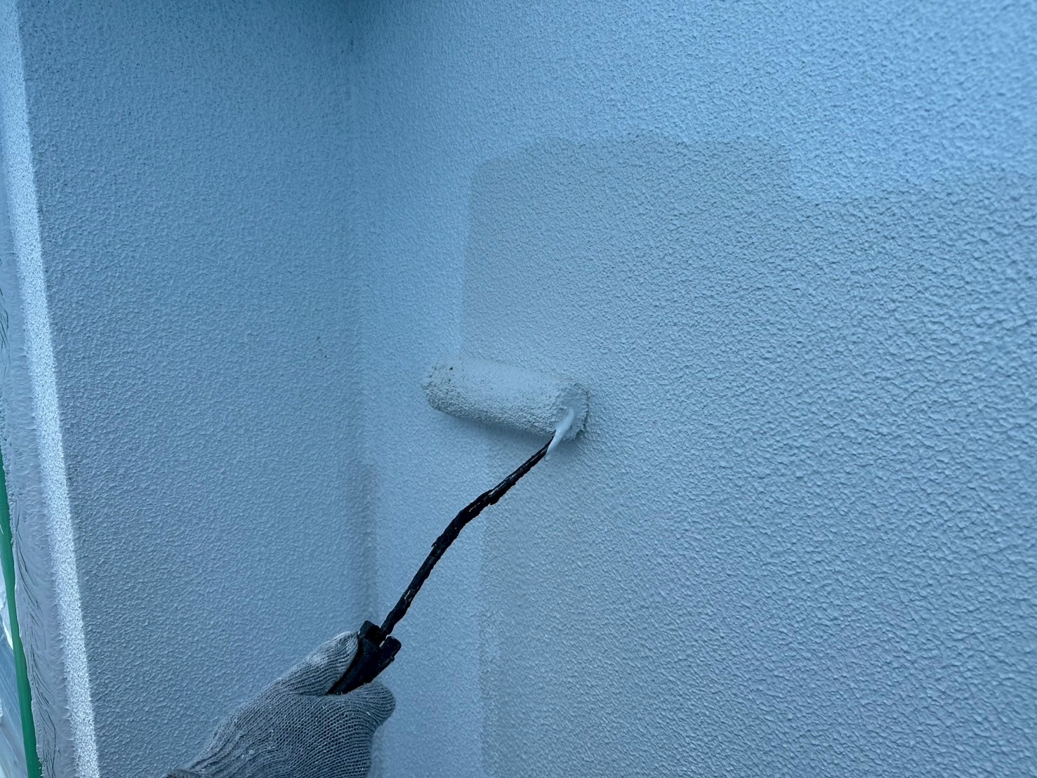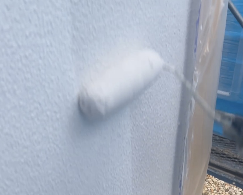 外壁はクラック処理後にマスチックローラーにて、ゆず肌にしてからラジカルシリコンを塗装させていただきました。