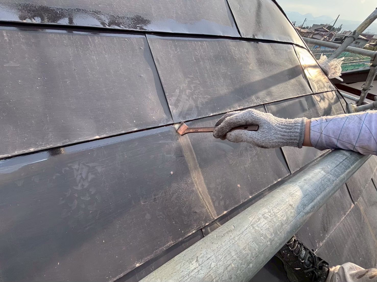 築年数と屋根の状態から屋根の葺き替えも提案しましたが、今回は塗装で持たせることに。