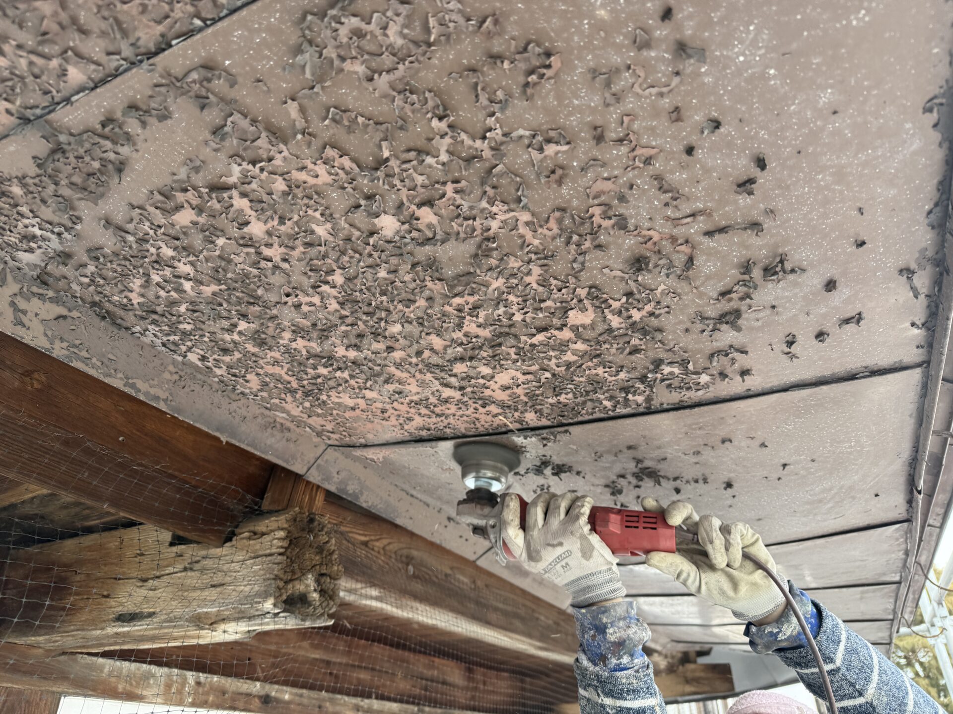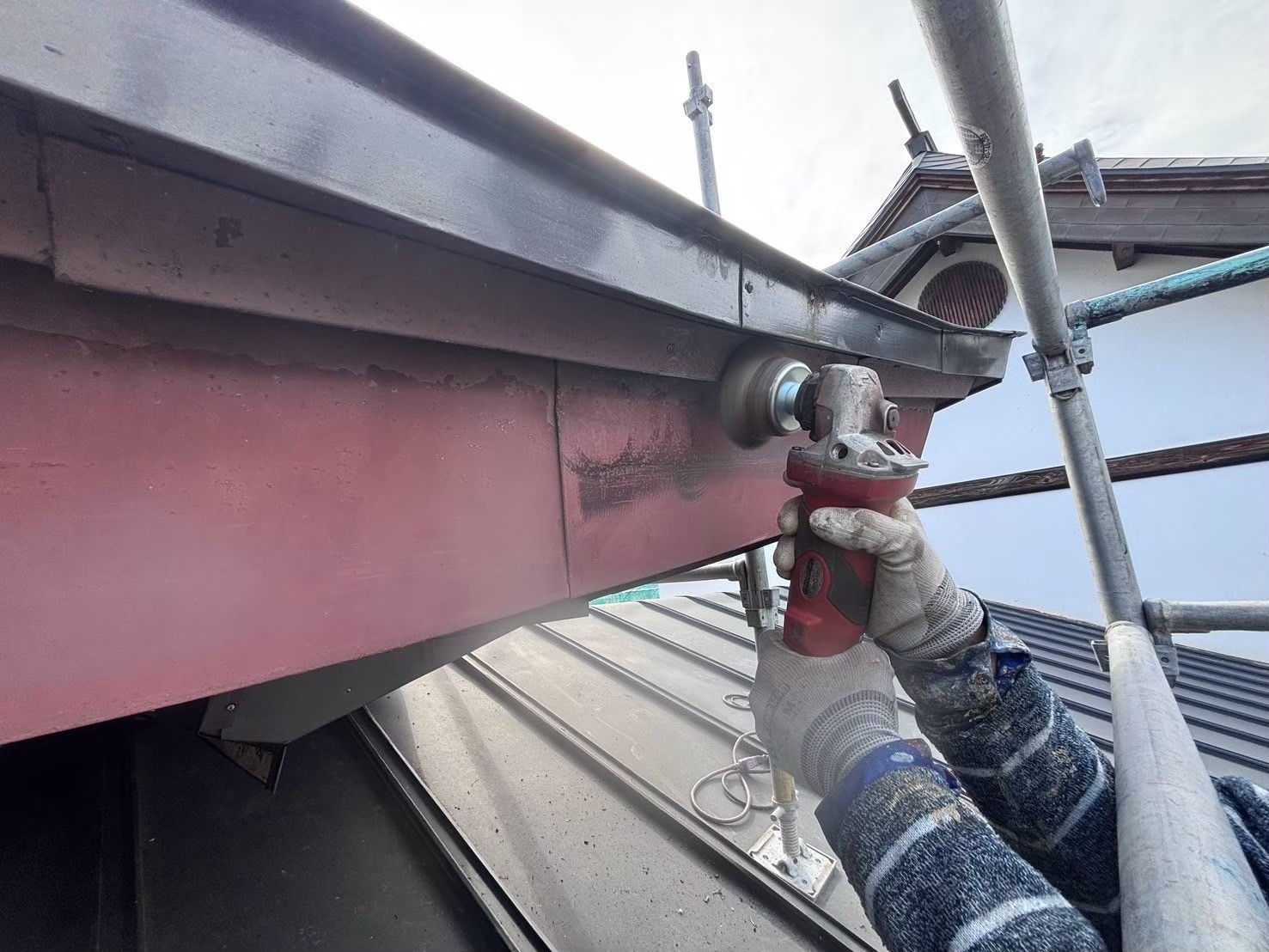 剥がれとサビを手作業で研磨し、サビの発生を止めるサビシャットを塗布。