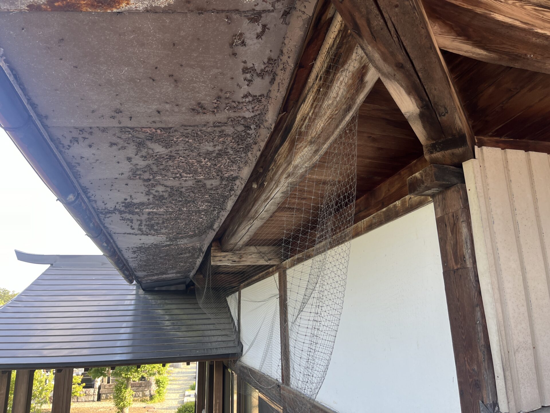 雲祥院 金属屋根 金属サイディング【ラジカル3回塗り】【雨樋交換】面積【屋根231㎡】【外壁180㎡】 施工前