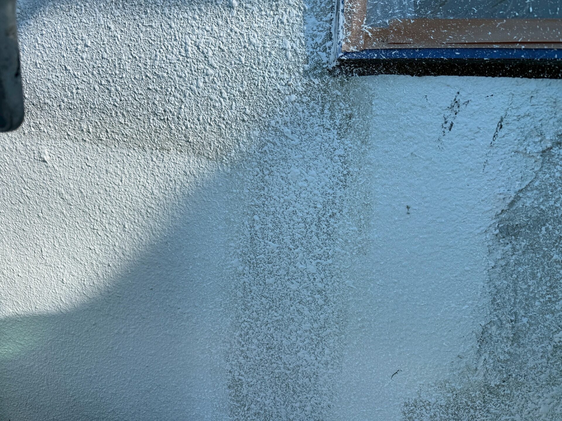 外壁は繋ぎ目地の無いモルタルでしたのでクラックが入りやすい構造でした。