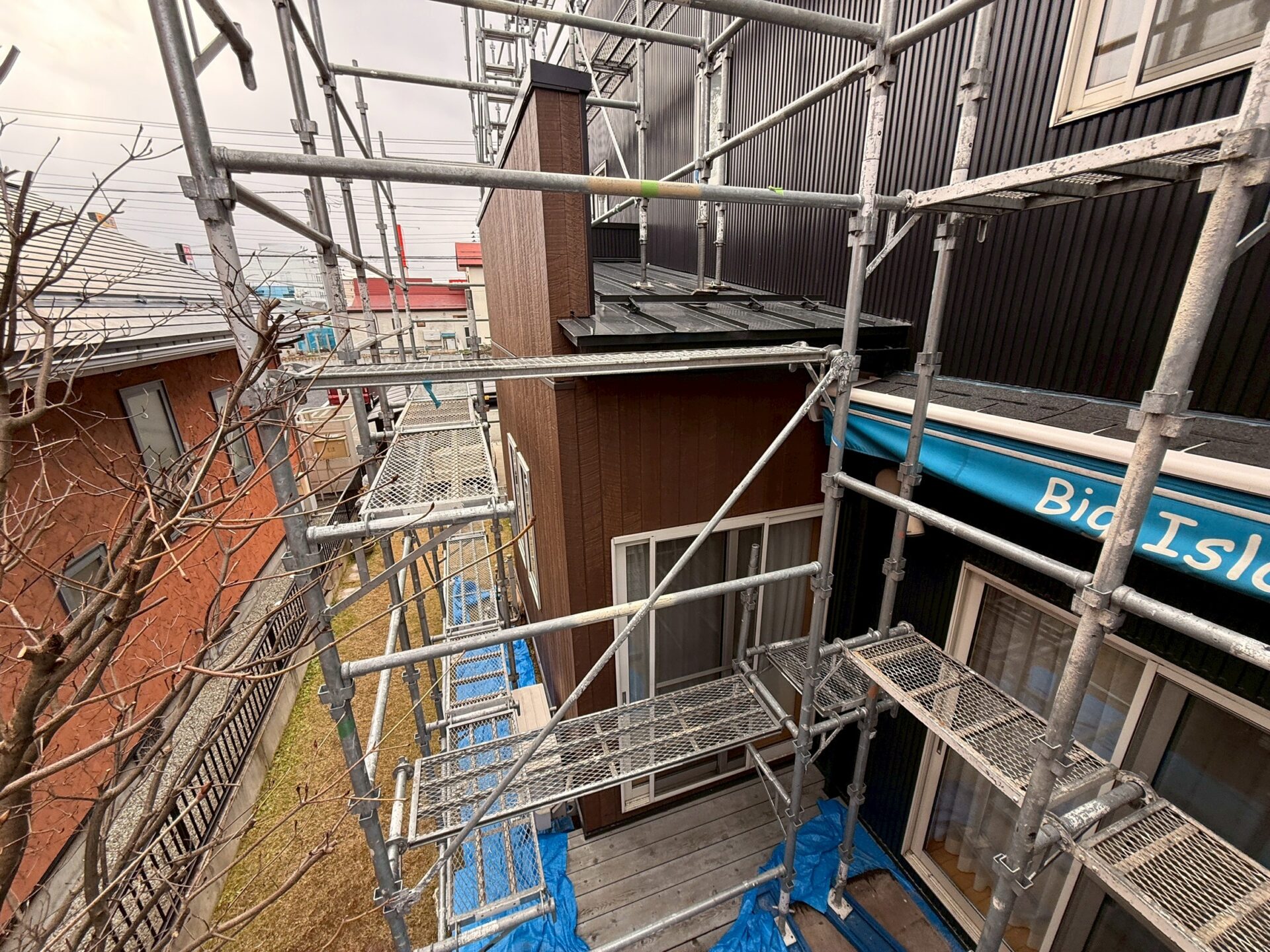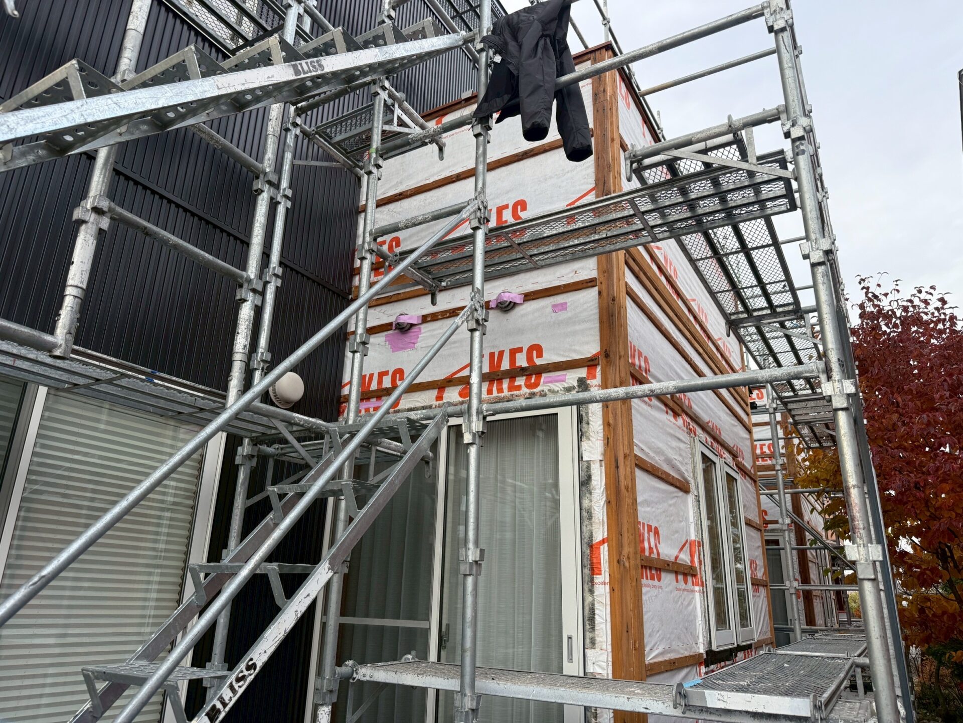 既存外壁に十分な通気が確保できていなかったために、内部結露などのトラブルを考慮し、通気材も取付させていただきました。