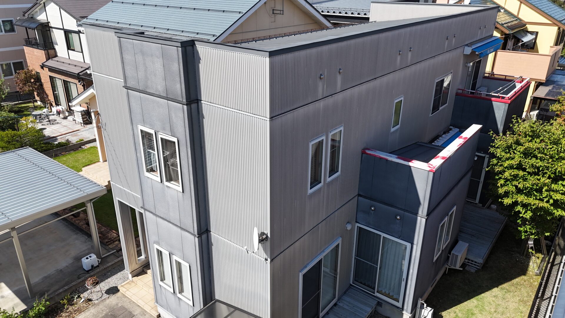 金属サイディング部分はガルバでまだ持ちそうでしたが、今後メンテナンスは必要になってくるので無機塗料にて施工させていただきました。